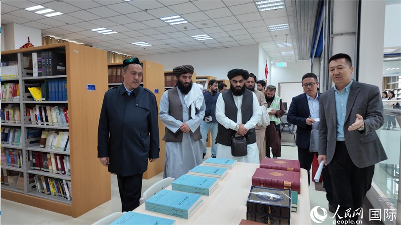 代表團在新疆伊斯蘭教經(jīng)學(xué)院圖書館參觀。人民網(wǎng)記者 章凱風(fēng)攝