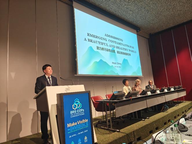 化學品和廢物三公約2025年締約方大會在瑞士日內(nèi)瓦召開,會期為2025年4月28日至5月9日,大會主題為“讓無形變得有形:化學品和廢物的健全管理”。超過150個締約方國家和觀察員國家、聯(lián)合國環(huán)境規(guī)劃署、聯(lián)合國開發(fā)計劃署、聯(lián)合國工發(fā)組織、全球環(huán)境基金秘書處等國際組織、全球化學品和廢物三公約區(qū)域技術(shù)中心以及非政府組織的2000余位代表參會。大會期間,中心還舉辦了主題為“無形污染 有形行動:中國履約成效與實踐” 展覽,分享了中國推動《斯德哥爾摩公約》履約和健全化學品和廢物環(huán)境管理的成功經(jīng)驗和案例。