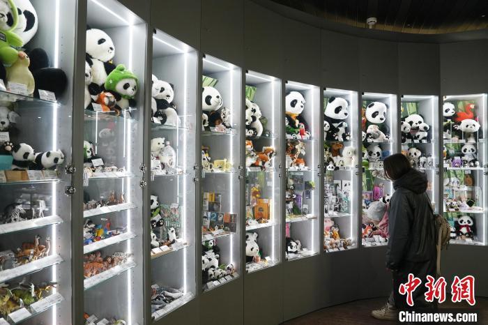 當(dāng)?shù)貢r(shí)間4月29日,莫斯科動(dòng)物園大熊貓館,游客在大熊貓文創(chuàng)紀(jì)念品柜臺(tái)選購(gòu)禮品?!≈行律缬浾?單璐 攝