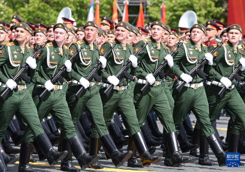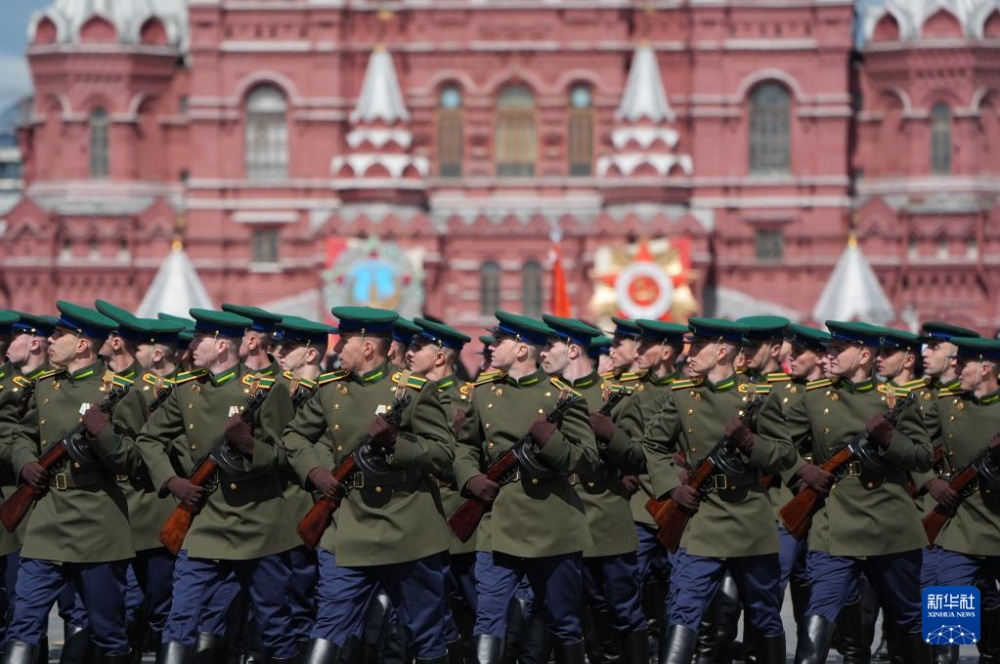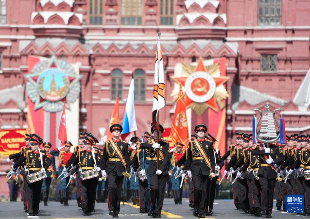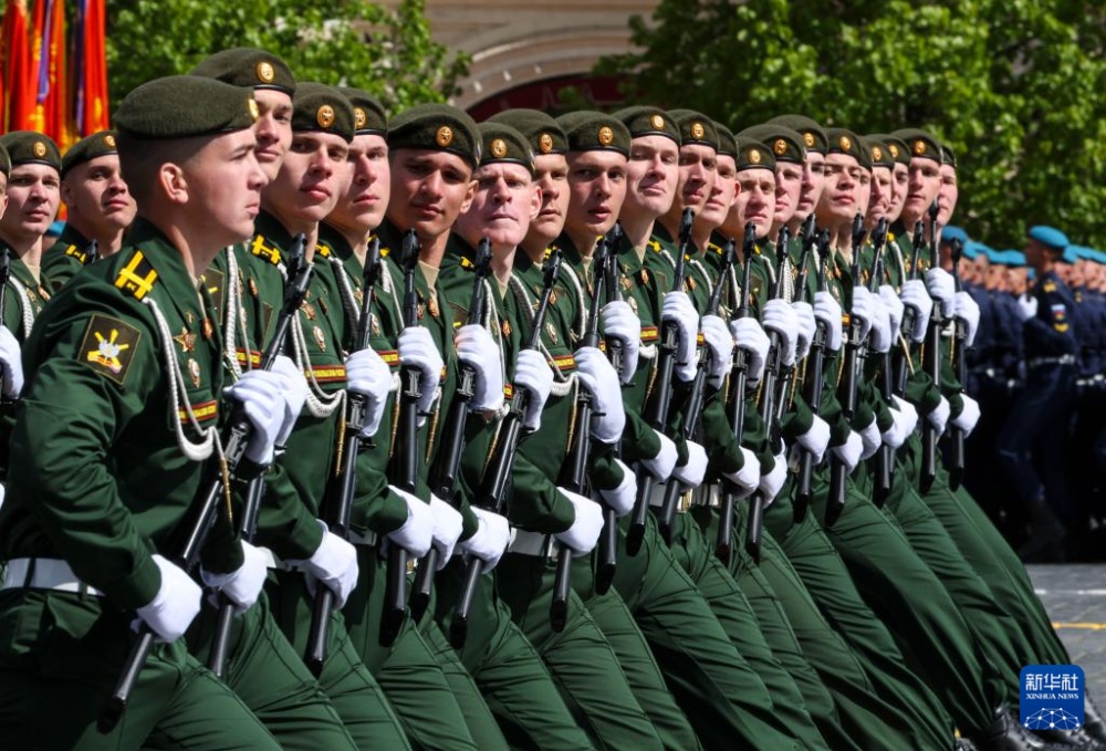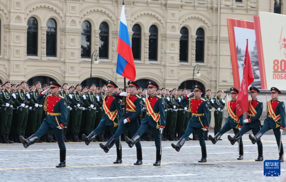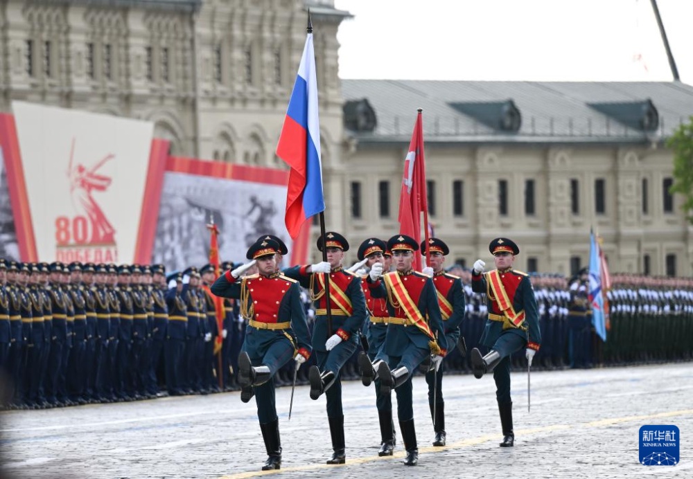 5月9日,在俄羅斯首都莫斯科,軍人參加紀(jì)念蘇聯(lián)偉大衛(wèi)國戰(zhàn)爭勝利80周年閱兵式。