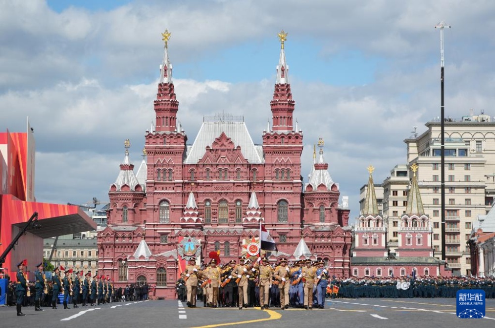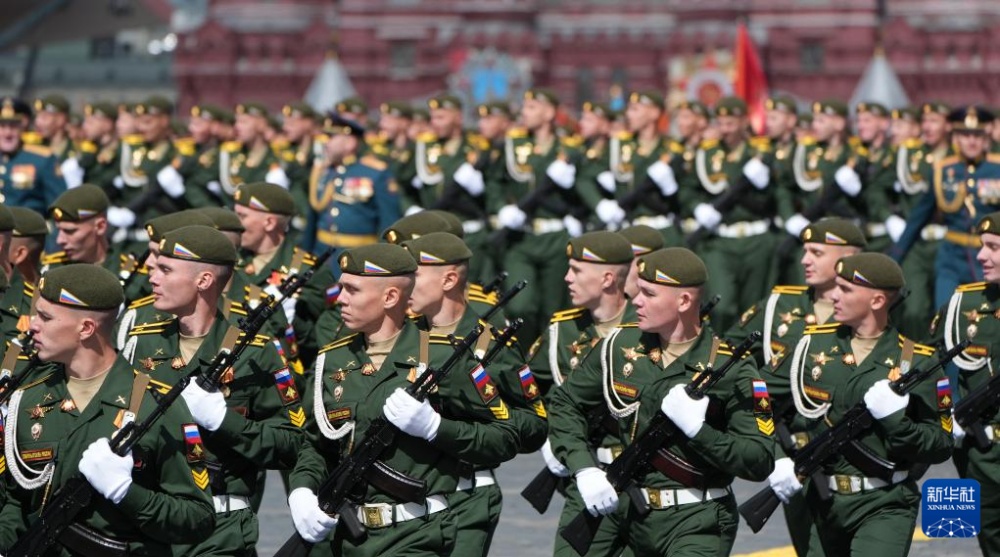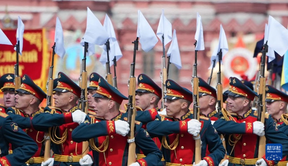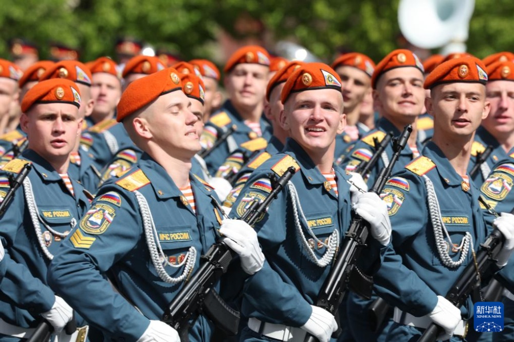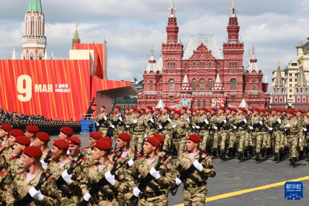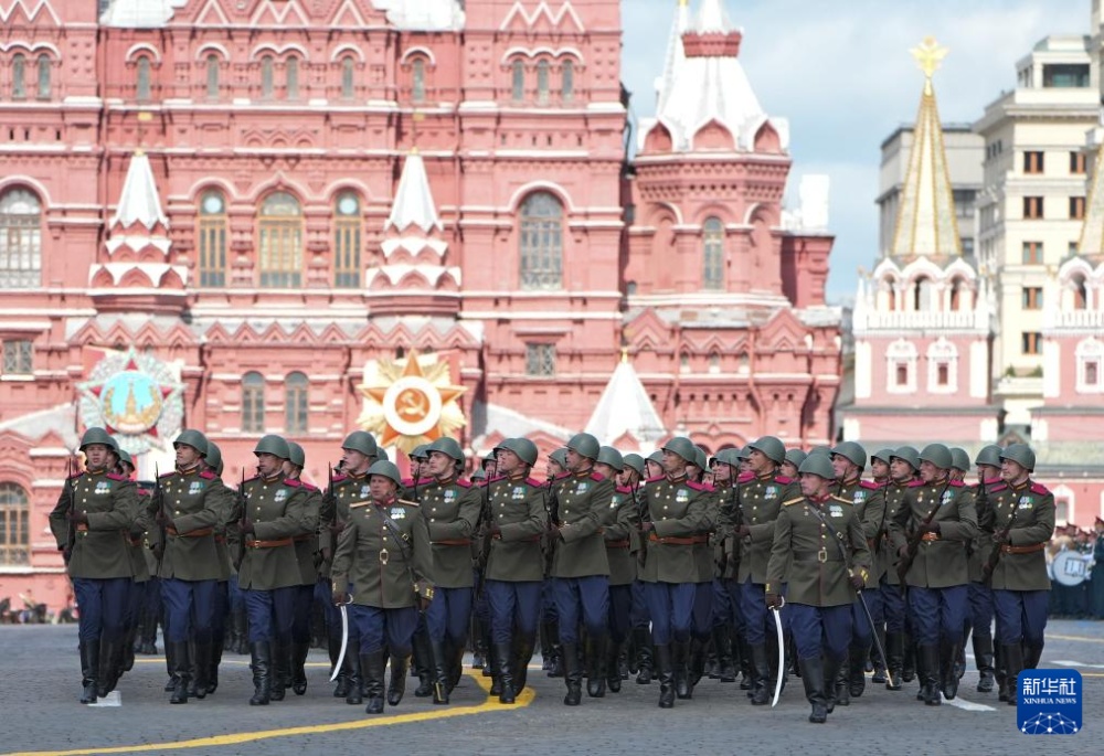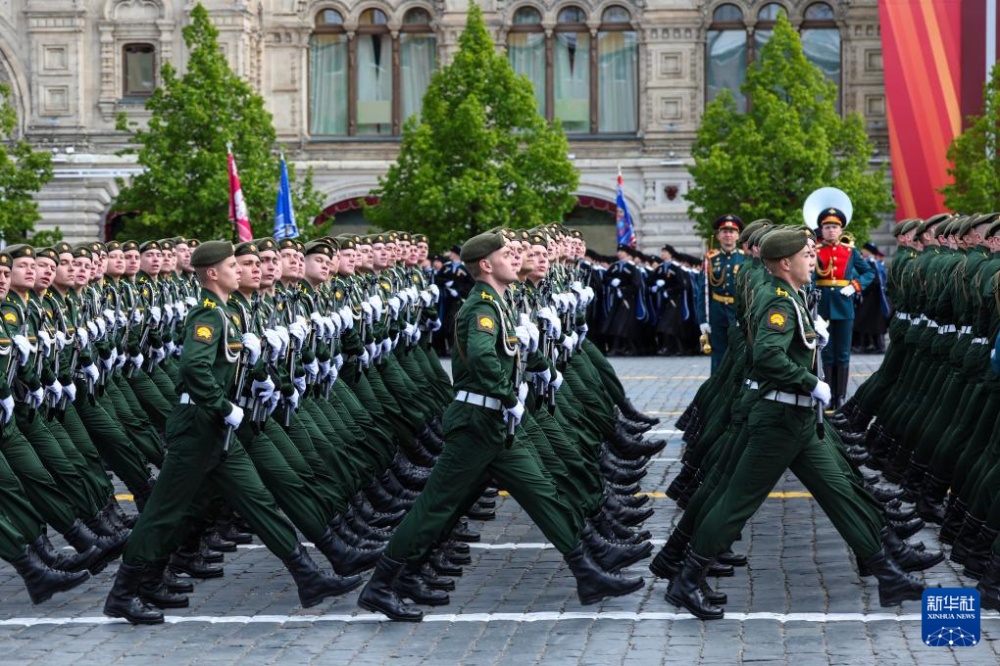 5月9日,在俄羅斯首都莫斯科,軍人參加紀(jì)念蘇聯(lián)偉大衛(wèi)國戰(zhàn)爭勝利80周年閱兵式。