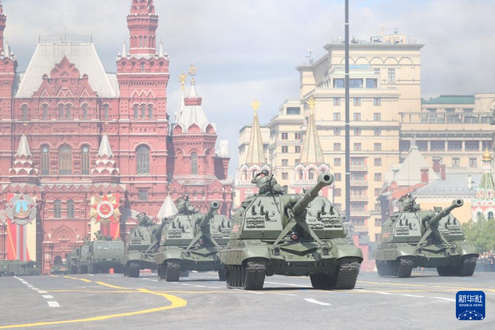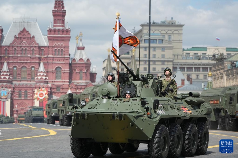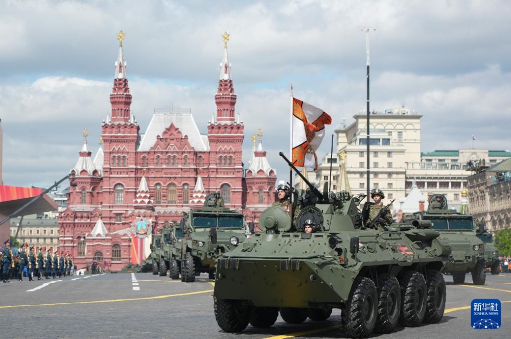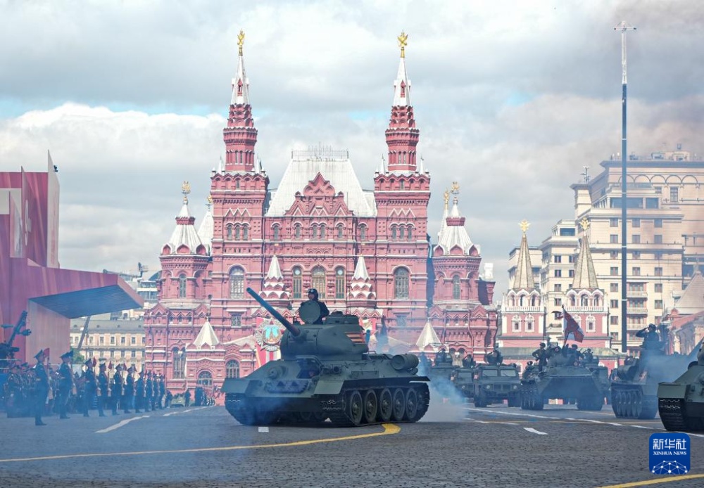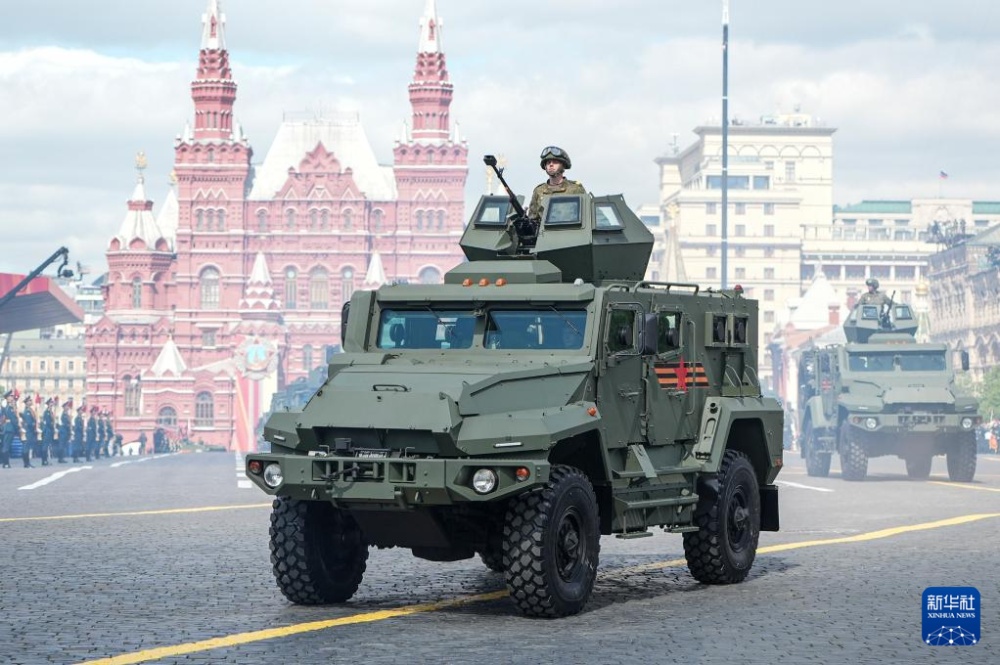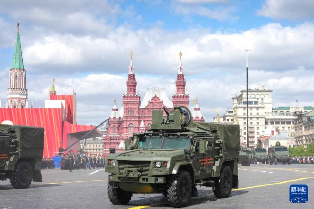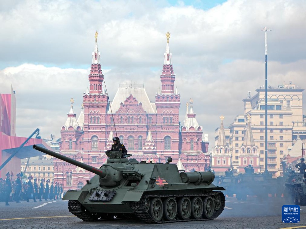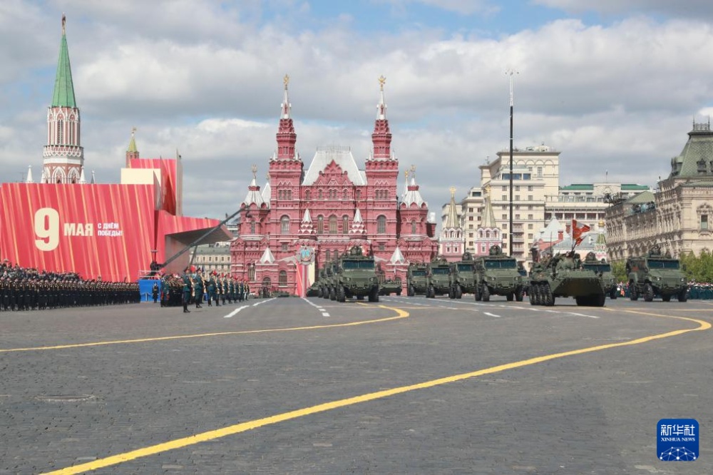 5月9日,在俄羅斯首都莫斯科,軍用車輛參加紀(jì)念蘇聯(lián)偉大衛(wèi)國戰(zhàn)爭勝利80周年閱兵式。