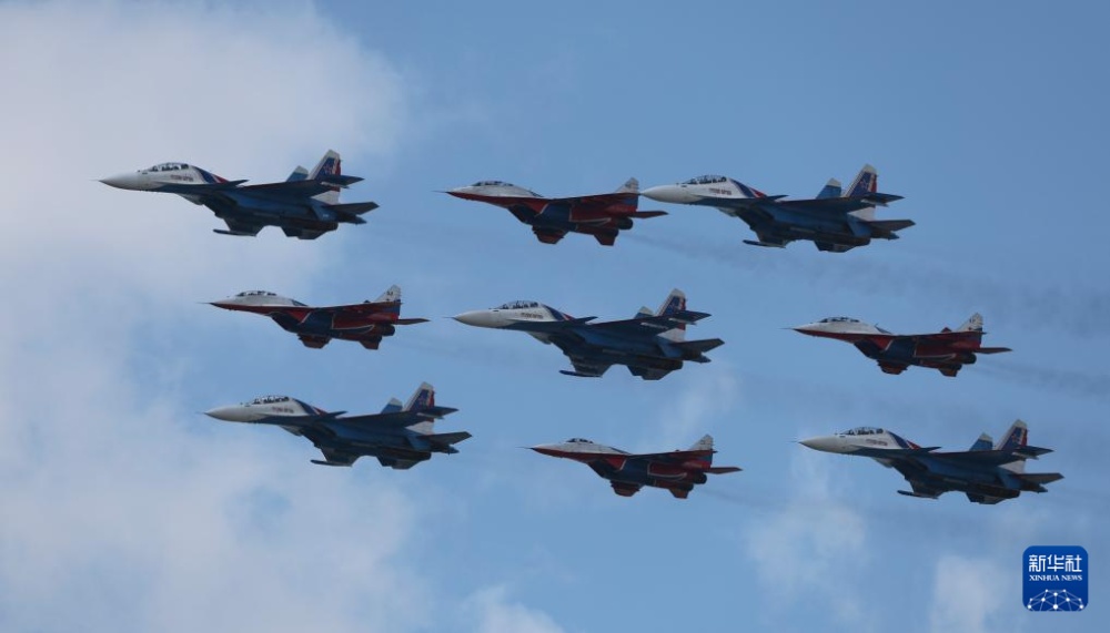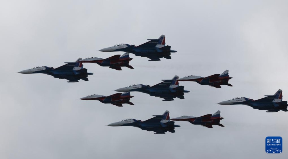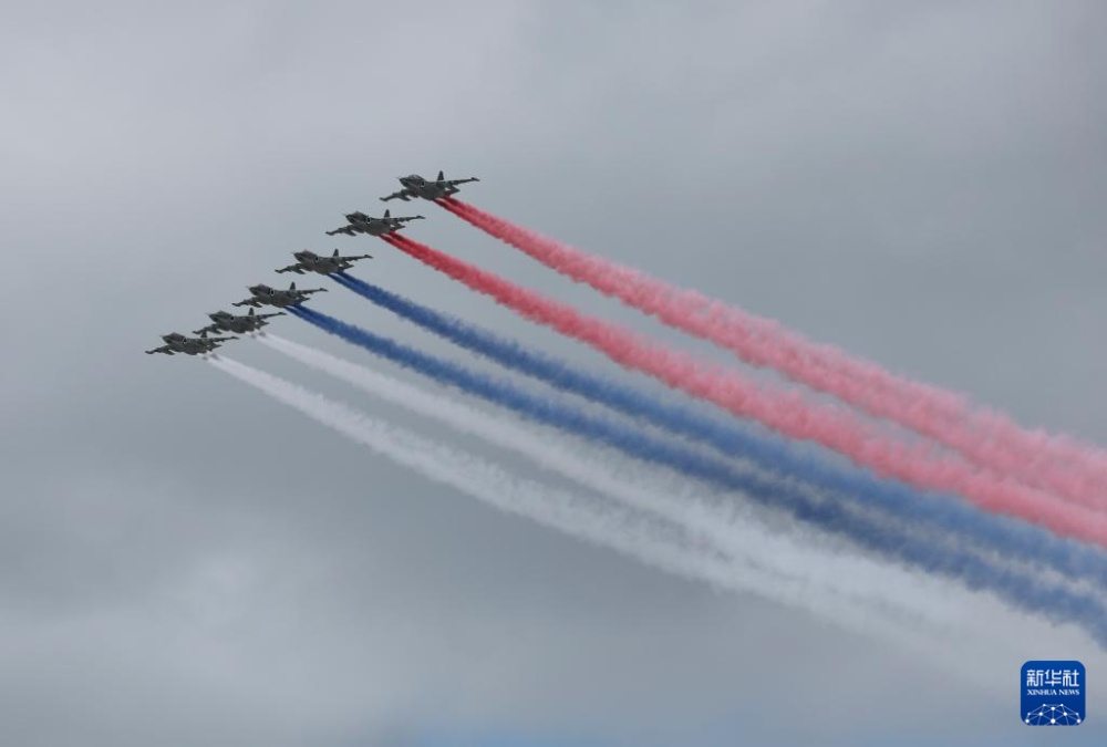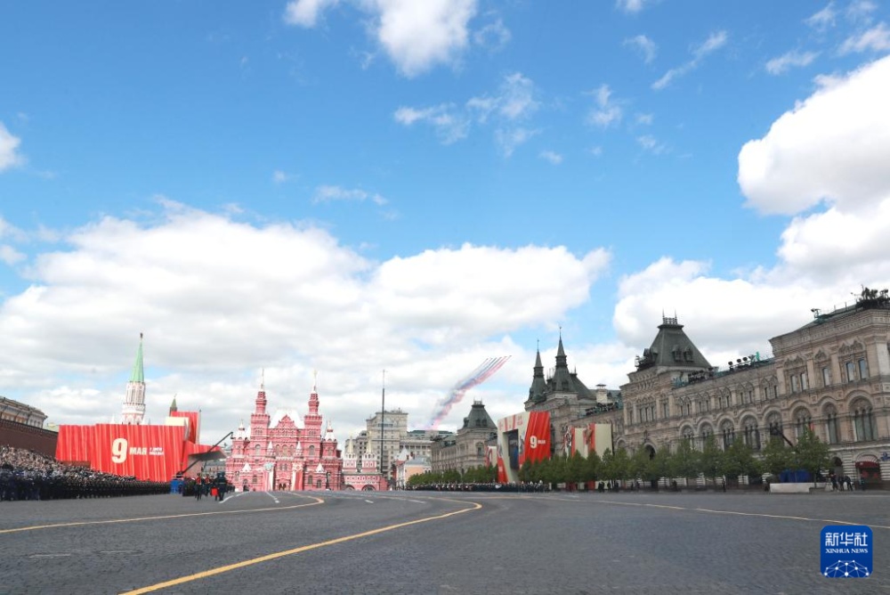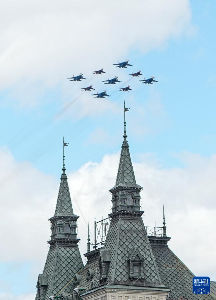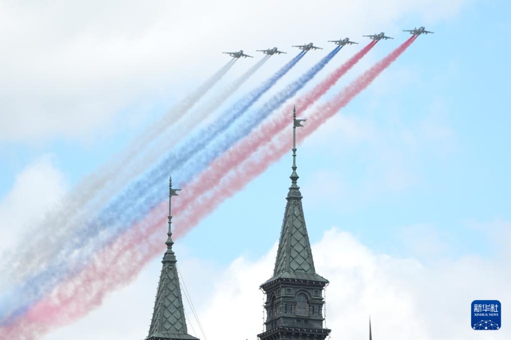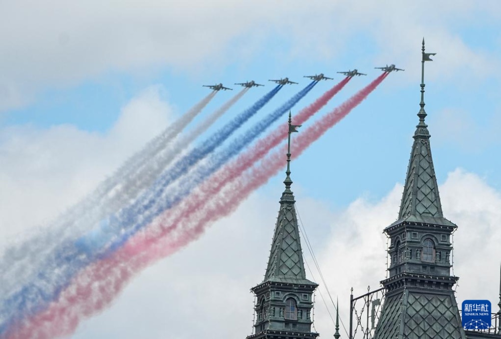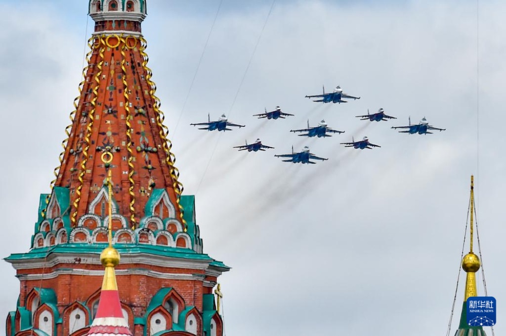 5月9日,在俄羅斯首都莫斯科,戰(zhàn)機(jī)編隊參加紀(jì)念蘇聯(lián)偉大衛(wèi)國戰(zhàn)爭勝利80周年閱兵式。