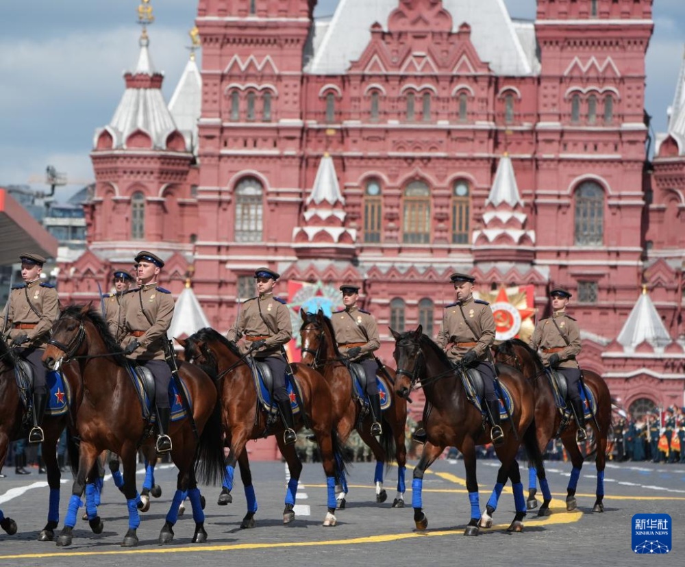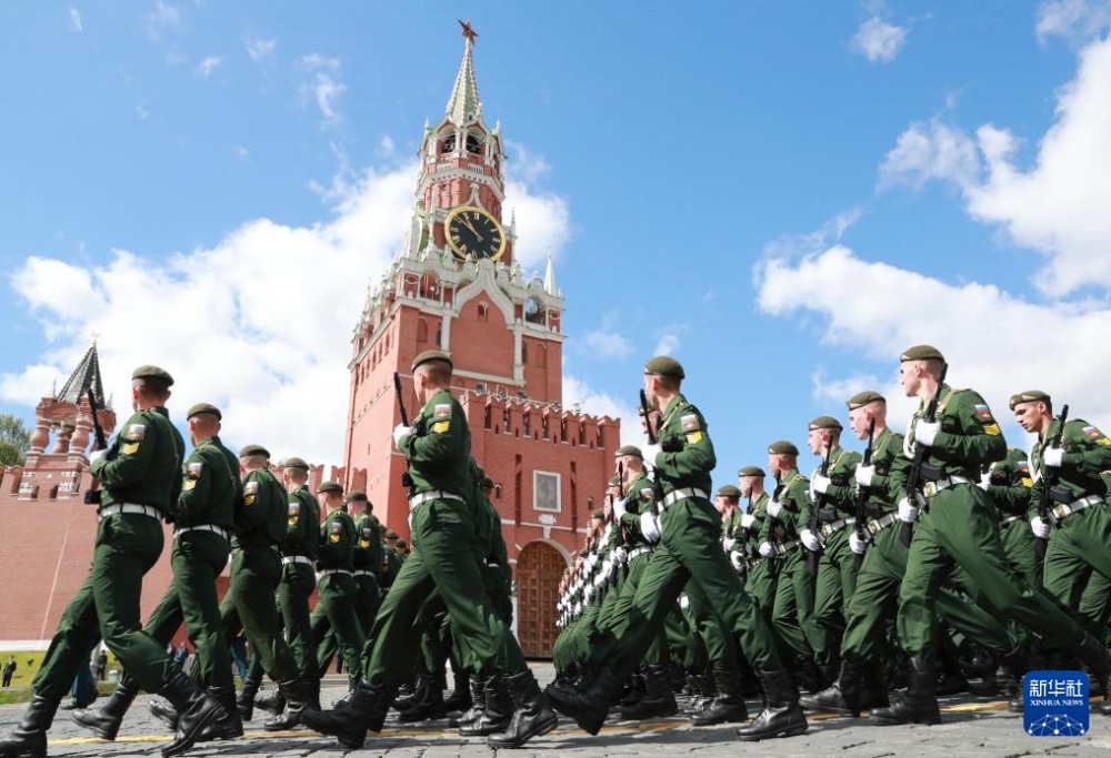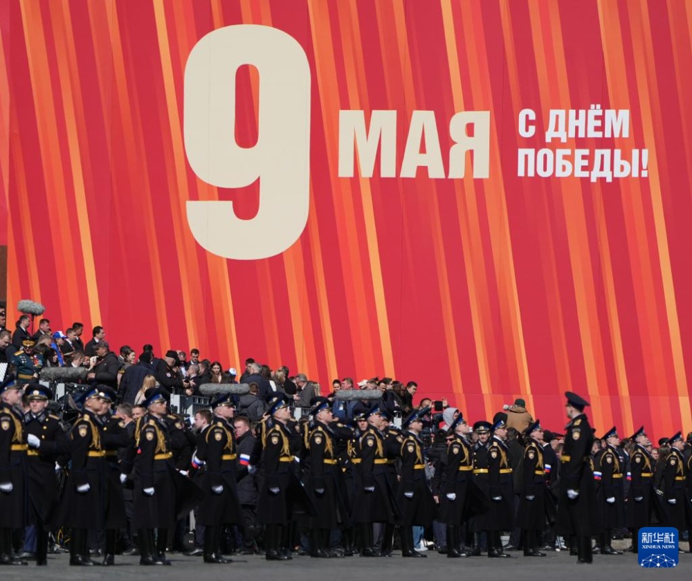 5月9日,在俄羅斯首都莫斯科,儀仗隊準(zhǔn)備參加紀(jì)念蘇聯(lián)偉大衛(wèi)國戰(zhàn)爭勝利80周年閱兵式。