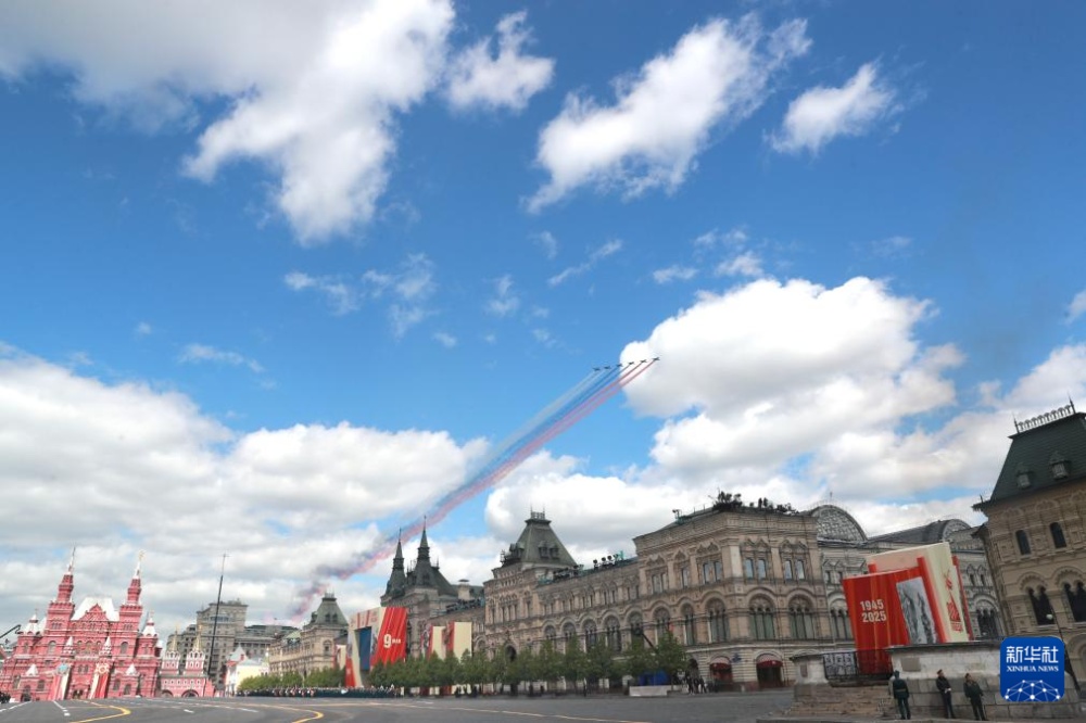 5月9日,在俄羅斯首都莫斯科,飛行編隊參加紀(jì)念蘇聯(lián)偉大衛(wèi)國戰(zhàn)爭勝利80周年閱兵式。