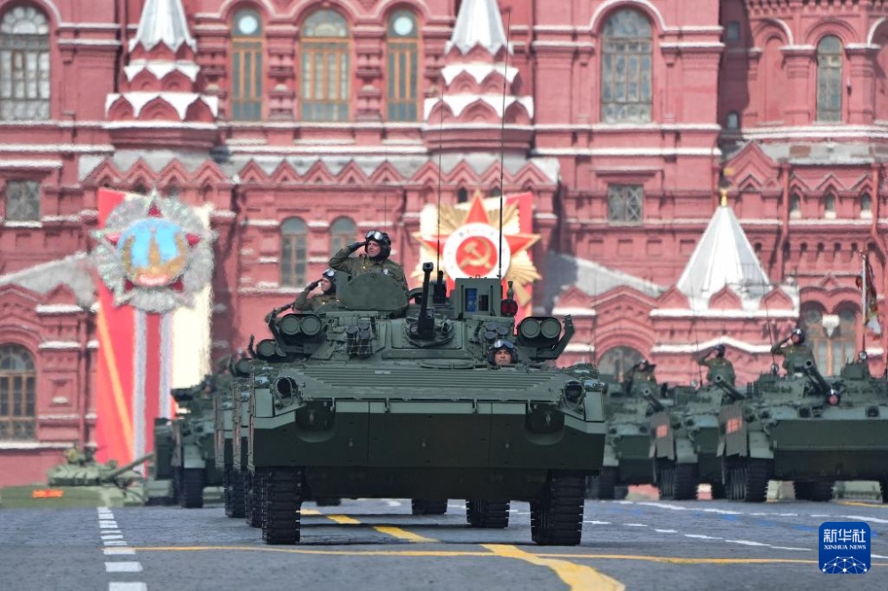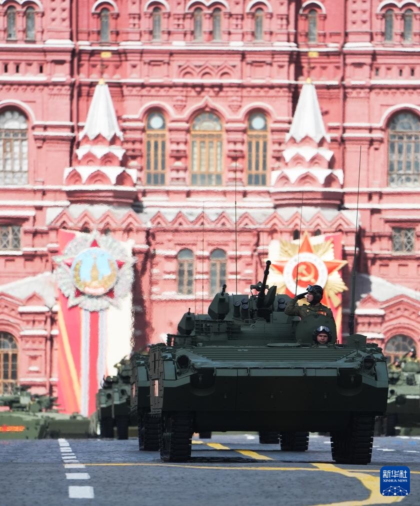 5月9日,在俄羅斯首都莫斯科,步兵戰(zhàn)車參加紀(jì)念蘇聯(lián)偉大衛(wèi)國戰(zhàn)爭勝利80周年閱兵式。