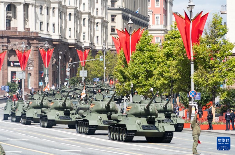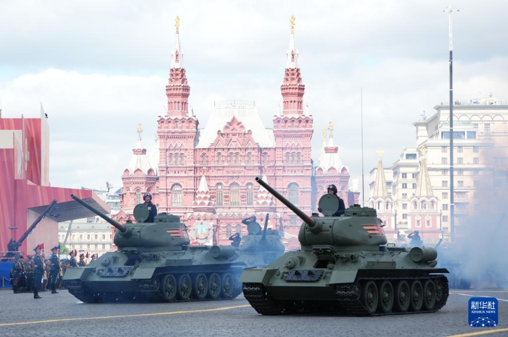 5月9日,在俄羅斯首都莫斯科,T-34坦克參加紀(jì)念蘇聯(lián)偉大衛(wèi)國戰(zhàn)爭勝利80周年閱兵式。