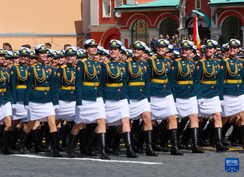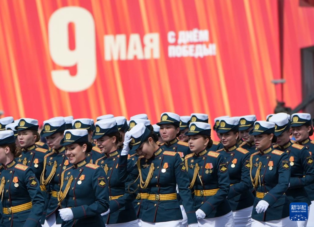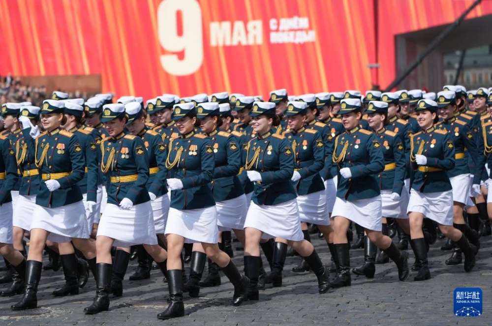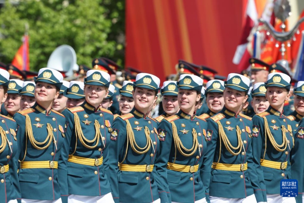 5月9日,在俄羅斯首都莫斯科,女兵參加紀(jì)念蘇聯(lián)偉大衛(wèi)國戰(zhàn)爭勝利80周年閱兵式。
