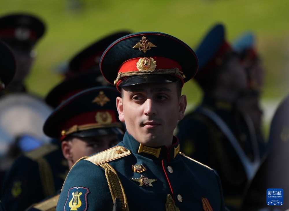 5月9日,在俄羅斯首都莫斯科,軍樂隊成員準(zhǔn)備參加紀(jì)念蘇聯(lián)偉大衛(wèi)國戰(zhàn)爭勝利80周年閱兵式。