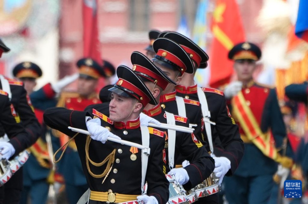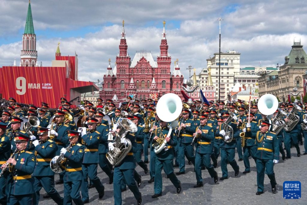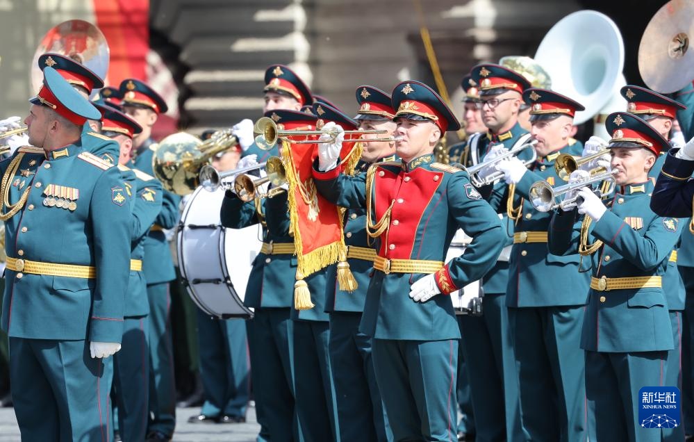 5月9日,在俄羅斯首都莫斯科,軍樂隊參加紀(jì)念蘇聯(lián)偉大衛(wèi)國戰(zhàn)爭勝利80周年閱兵式。