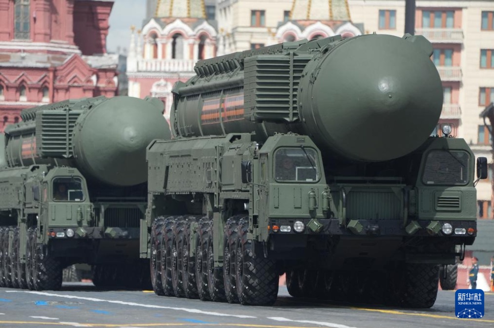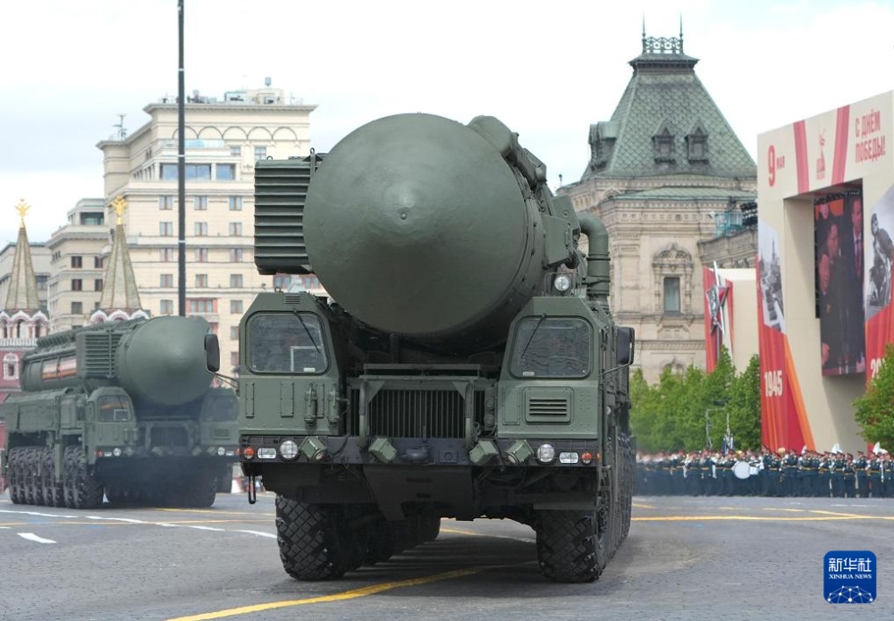 這是5月9日在俄羅斯首都莫斯科舉行的紀(jì)念蘇聯(lián)偉大衛(wèi)國戰(zhàn)爭勝利80周年閱兵式上拍攝的洲際彈道導(dǎo)彈。
