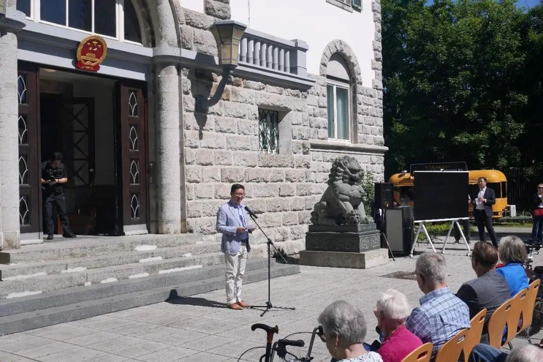 中國駐法蘭克??傤I(lǐng)事黃昳揚(yáng)致辭。中國駐法蘭克??傤I(lǐng)館供圖