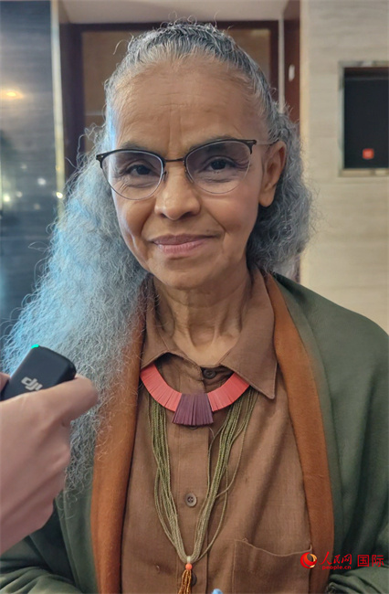 巴西環(huán)境與氣候部部長瑪麗娜·席爾瓦接受人民網(wǎng)采訪。人民網(wǎng)記者 符園園攝