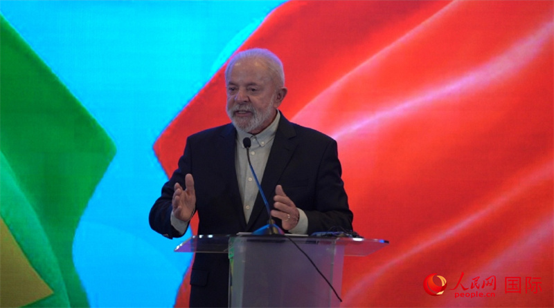 巴西總統(tǒng)盧拉·達席爾瓦14日在京舉行新聞發(fā)布會。人民網(wǎng)記者 魯揚攝