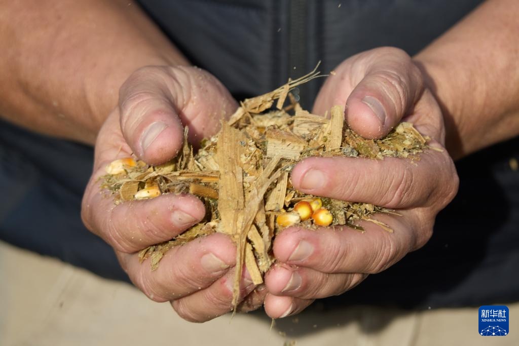 這是5月14日在阿根廷潘帕斯草原萊因迪亞納牧場拍攝的飼料。新華社記者 孟鼎博 攝