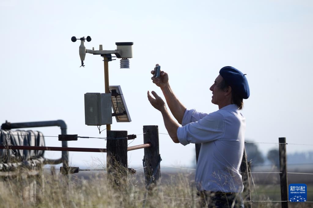 5月14日,埃塞基耶爾·內爾維在阿根廷潘帕斯草原萊因迪亞納牧場觀察風向。新華社記者 孟鼎博 攝