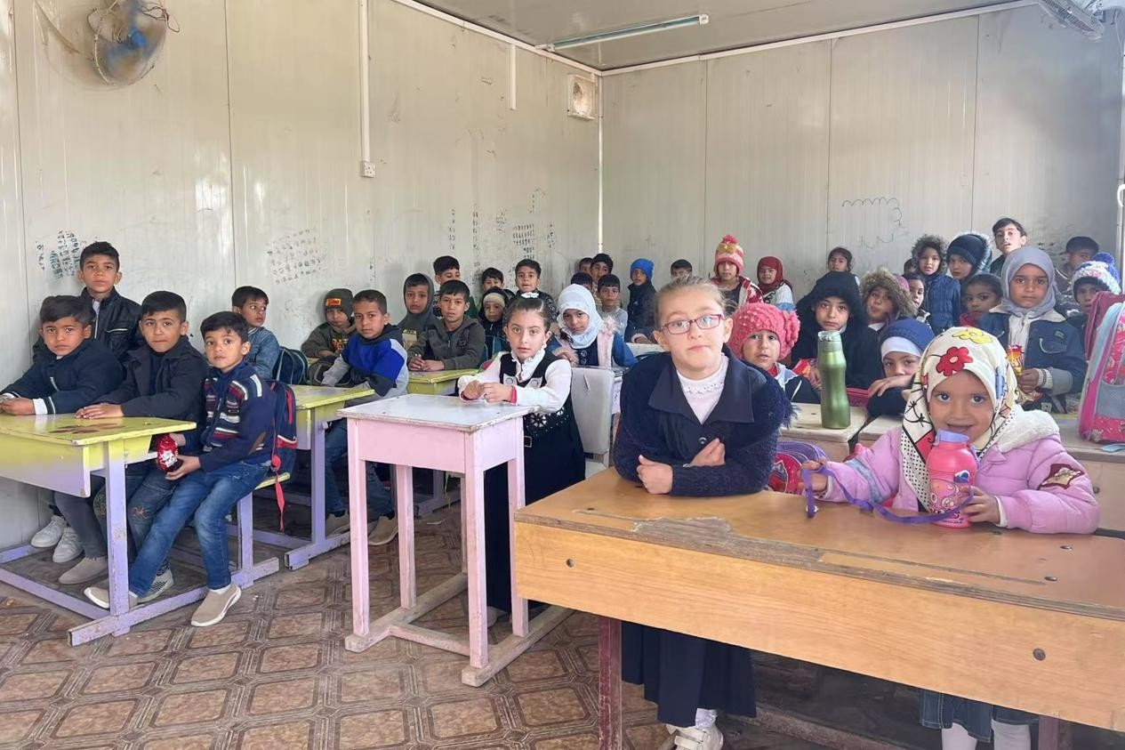 伊拉克卡爾巴拉省學(xué)生在簡易板房內(nèi)上課。中國電建供圖