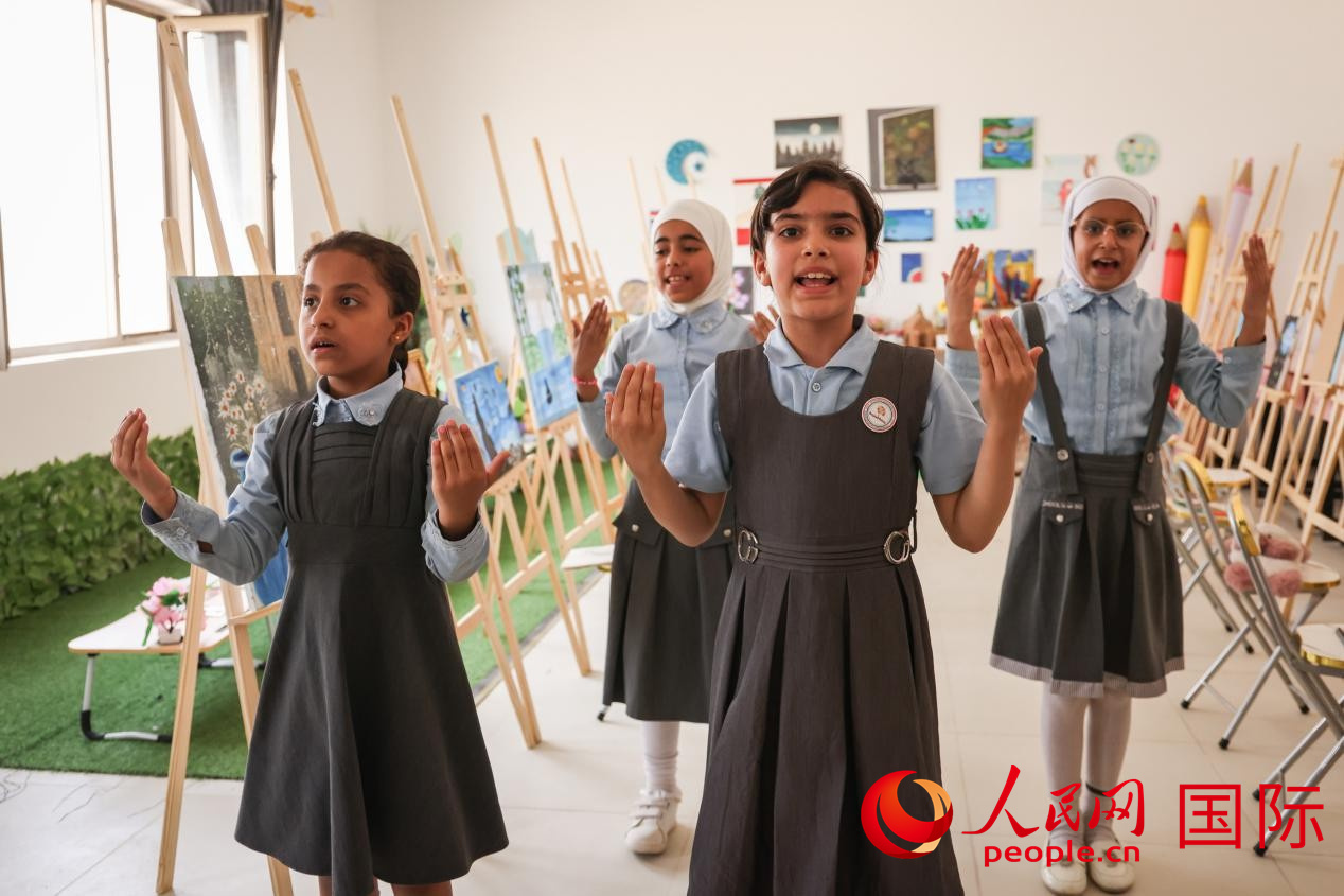 阿爾穆塔·阿里卡特國際學(xué)校的學(xué)生在展示課間活動。人民網(wǎng)記者 薛丹攝
