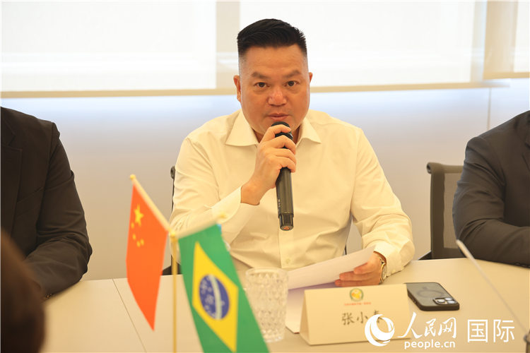 巴西中國和平統(tǒng)一促進會會長張小春在座談會上致辭。 人民網(wǎng)記者 時元皓攝