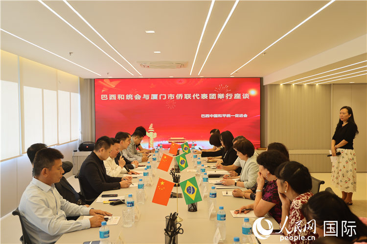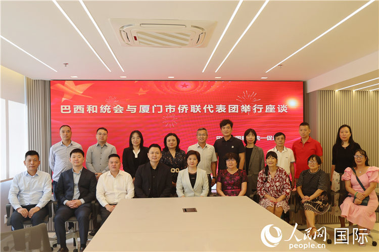 參加福建省廈門市僑聯(lián)代表團與巴西和統(tǒng)會座談的嘉賓合影。人民網(wǎng)記者 時元皓攝