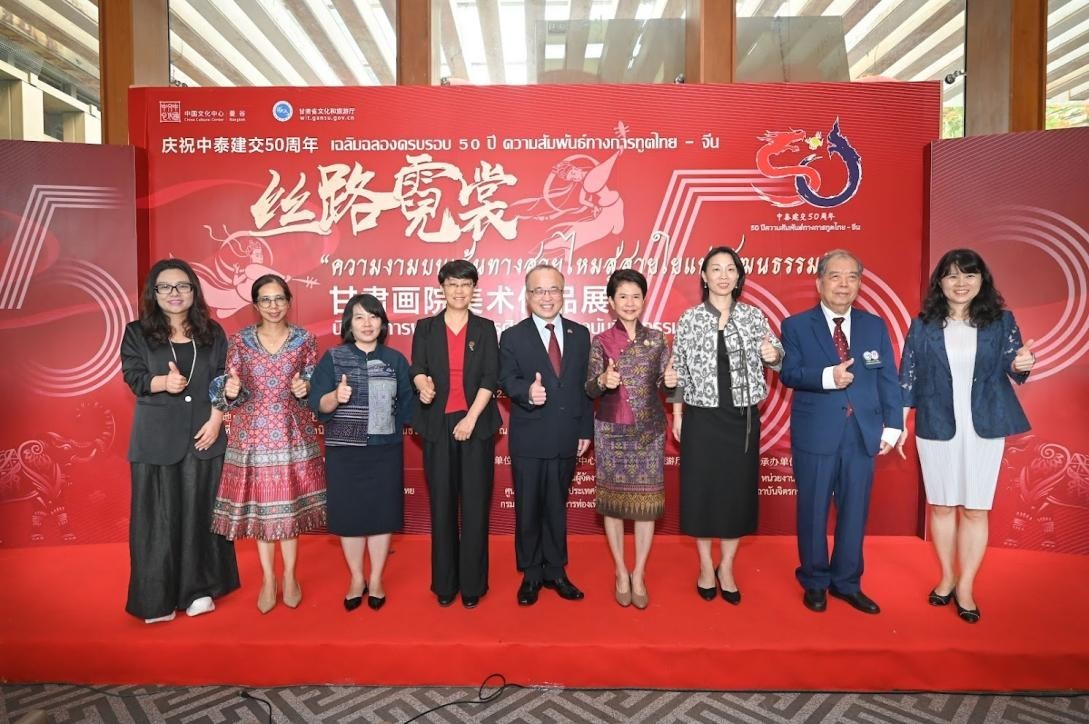 吳志武在致辭中表示,今年是中泰建交50周年暨“中泰友誼金色50年”。半個(gè)世紀(jì)風(fēng)雨兼程,兩國始終同舟共濟(jì),在政治、經(jīng)貿(mào)、文化等各領(lǐng)域密切合作,結(jié)出累累碩果。甘肅是古絲綢之路的黃金通道,是連接“一帶一路”的重要樞紐。今天甘肅畫院展出的30余幅書畫創(chuàng)作展現(xiàn)了濃郁的西北風(fēng)情與深厚的歷史積淀。衷心期待中泰文化藝術(shù)機(jī)構(gòu)通過本次展覽,交流互鑒,凝聚共識(shí),促進(jìn)合作,為深化中泰人文交流注入新動(dòng)力。