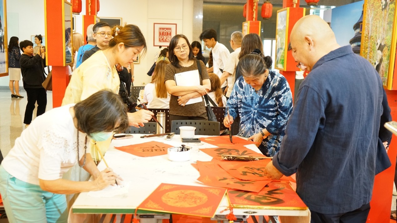 泰國觀眾學(xué)寫中國書法。曼谷中國文化中心供圖