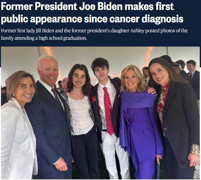 據(jù)報道,當天,該活動在康涅狄格州索爾茲伯里學校舉辦。在拜登的女兒艾什莉·拜登社交媒體發(fā)布的多張現(xiàn)場照片中,拜登和其他家庭成員一起出席慶祝其孫子羅伯特·亨特·拜登二世的高中畢業(yè)典禮。