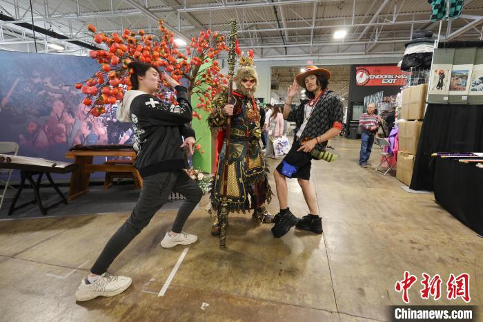 當(dāng)?shù)貢r(shí)間5月25日,加拿大多倫多,在北美動(dòng)漫節(jié)上,一位動(dòng)漫coser(角色扮演者)以中國(guó)國(guó)產(chǎn)游戲《黑神話:悟空》的悟空形象現(xiàn)身,吸引動(dòng)漫迷合影?!≈行律缬浾?余瑞冬 攝
