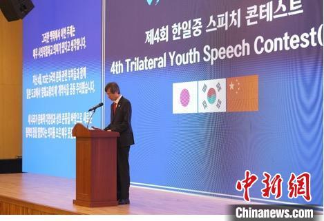 5月23日,第四屆中日韓青年演講比賽在韓國釜山舉行。圖為中日韓合作秘書處秘書長李熙燮致辭。中日韓合作秘書處 供圖