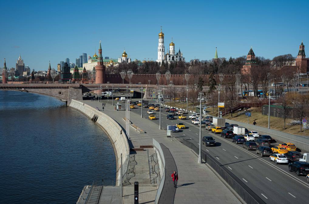 3月18日,在俄羅斯莫斯科,行人從莫斯科河邊走過(guò)。新華社記者白雪騏攝