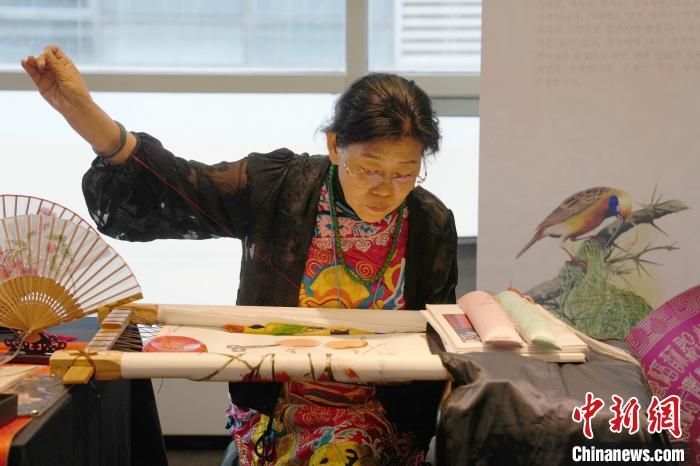 當(dāng)?shù)貢r間6月5日,湖北省非物質(zhì)文化遺產(chǎn)“大冶刺繡”亮相首爾國際旅游展。中新網(wǎng)記者 劉旭 攝
