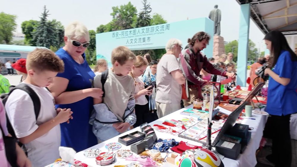 人文交流集市6月2日在阿拉木圖市中心的廣場(chǎng)拉開(kāi)帷幕,非遺技藝、文創(chuàng)產(chǎn)品、中醫(yī)藥知識(shí)普及等豐富多彩的活動(dòng)吸引了眾多當(dāng)?shù)孛癖姟?/p>