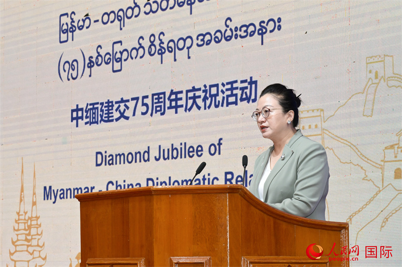 中國(guó)駐緬甸大使馬珈發(fā)表致辭。人民網(wǎng)記者 謝佳君攝