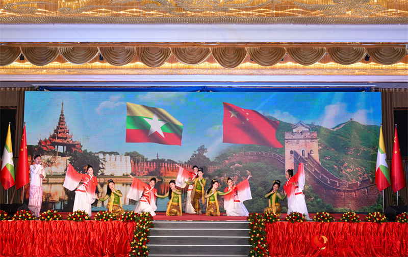 緬甸藝術(shù)家表演了精彩的文藝節(jié)目,活動(dòng)現(xiàn)場(chǎng)氣氛熱烈友好。當(dāng)晚,緬甸副總理兼外長(zhǎng)丹穗舉行了慶祝晚宴。