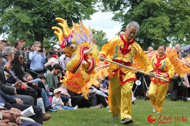 劍橋舞龍隊拉開龍舟節(jié)演出序幕。人民網(wǎng) 徐量攝