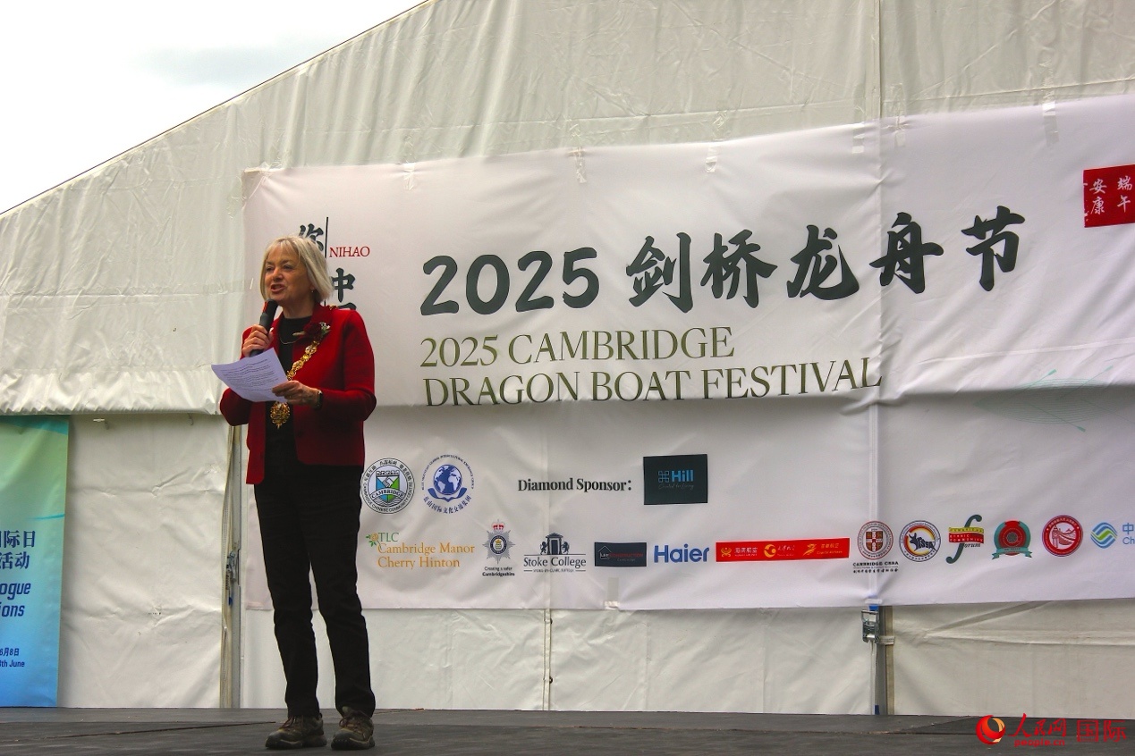 劍橋郡國王代表弗朗西斯·伯基特出席活動,熱烈歡迎冠軍隊伍——中國廣東汕頭潮陽龍舟隊。他表示,潮陽隊的到來為賽事增添活力,讓當?shù)孛癖娊嚯x感受中國傳統(tǒng)文化,對促進英中民間交流具有深遠意義。新上任的劍橋市長黛娜·龐茲表示,在當今世界日益傾向孤立主義的背景下,她期望憑借自身藝術(shù)背景搭建國內(nèi)外溝通橋梁。她高度肯定了劍橋龍舟節(jié)在促進英中文化交流、推動文明互鑒中的重要價值,呼吁以文化為紐帶,構(gòu)建和諧包容的世界。