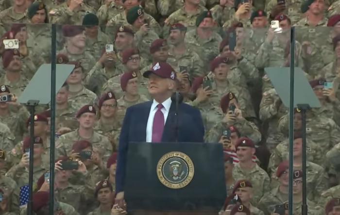 中新網(wǎng)6月11日電 根據(jù)白宮社交媒體賬號發(fā)布的視頻顯示,當(dāng)?shù)貢r間10日,美國總統(tǒng)特朗普在北卡羅來納州的軍事基地布拉格堡演講時,現(xiàn)場豎起巨型防彈坡璃,高度可能超過兩米。