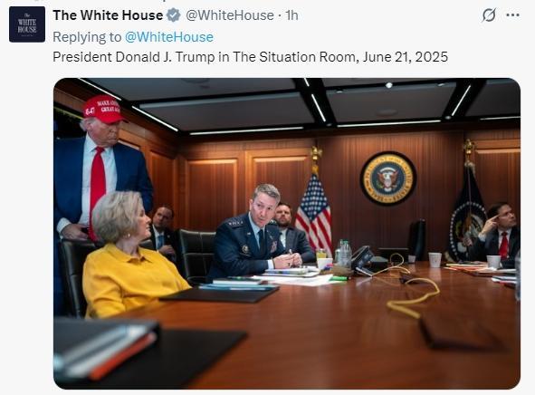 中新網(wǎng)6月22日電 當(dāng)?shù)貢r間6月21日,美國白宮公布一組照片,并配文稱“2025年6月21日,美國總統(tǒng)特朗普在白宮戰(zhàn)情室”。
