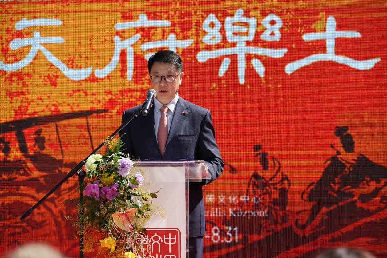 布達(dá)佩斯中國(guó)文化中心主任金浩致辭。布達(dá)佩斯中國(guó)文化中心供圖