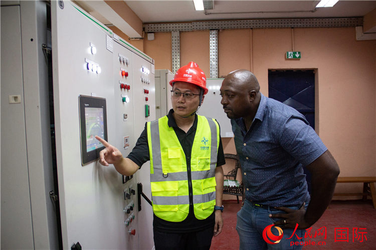 加蓬供水項(xiàng)目中方員工與加方工作人員開展交流。人民網(wǎng)記者 薛丹攝