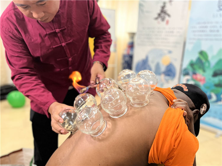 在中國(guó)傳統(tǒng)文化體驗(yàn)環(huán)節(jié),來(lái)賓們親手參與漆畫書簽制作,感受工藝之美;中醫(yī)傳統(tǒng)技術(shù)展示更引起當(dāng)?shù)孛癖姖夂衽d趣,中醫(yī)診脈、艾灸等體驗(yàn)活動(dòng)受到熱烈歡迎,醫(yī)療隊(duì)成員耐心講解,推動(dòng)中醫(yī)藥文化“走出去”。
