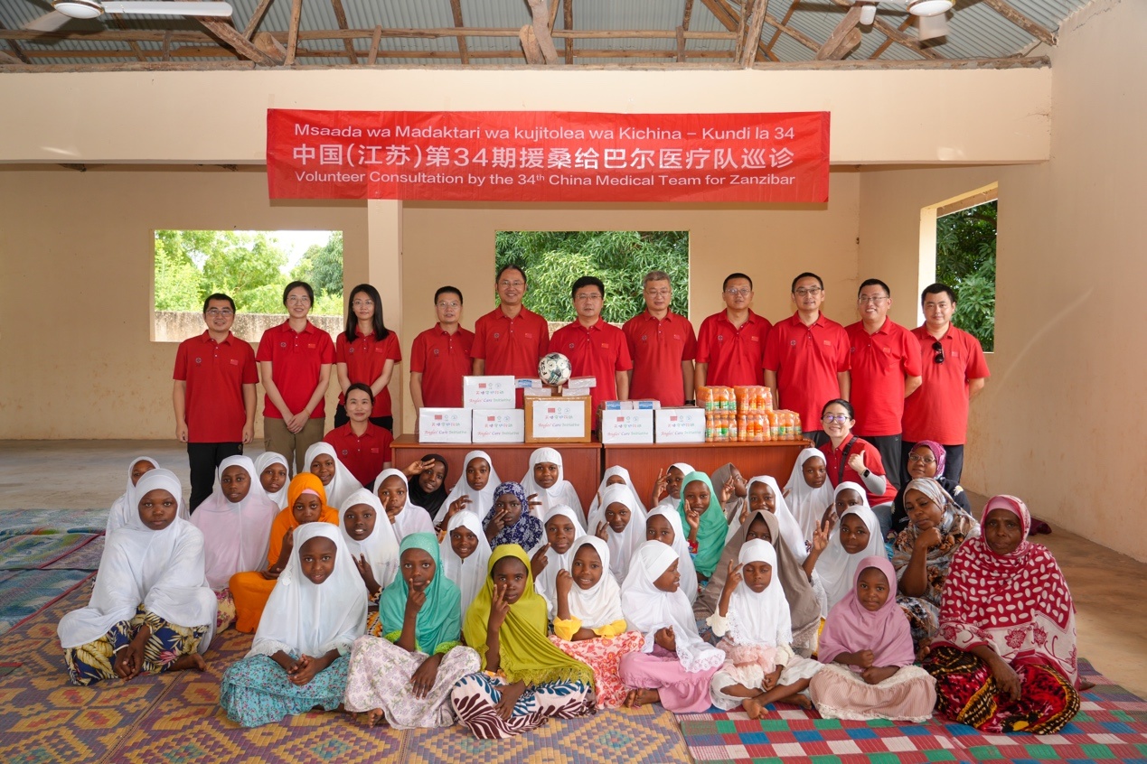 體檢結(jié)束后,醫(yī)療隊隊員們將精心準備的文具、足球及零食分發(fā)給大家。一本本嶄新的筆記本、一支支色彩鮮艷的畫筆,承載著對孩子們學(xué)習(xí)的鼓勵;一個個嶄新的足球,傳遞著對孩子們健康成長的期許;一袋袋美味的零食,更是讓孩子們歡呼雀躍。孩子們捧著這些禮物,眼中閃爍著喜悅的光芒,紛紛用稚嫩的聲音表達著感謝。最后孩子們還在老師的帶領(lǐng)下唱起了江蘇民歌“茉莉花”。