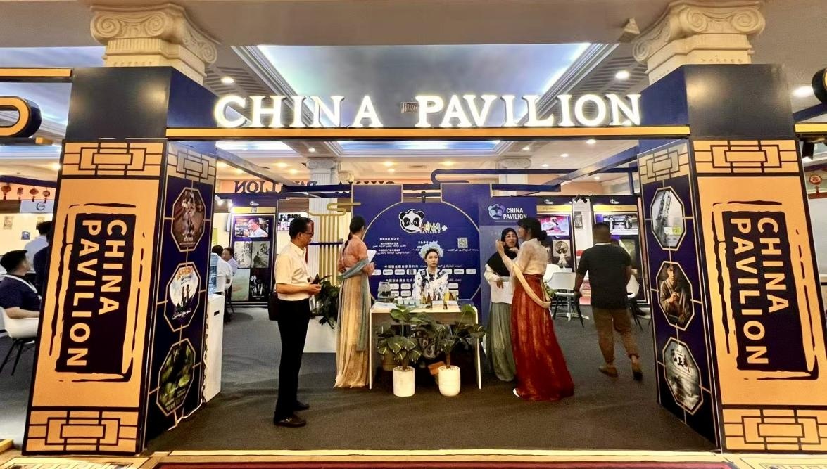 人民網(wǎng)哈馬馬特6月25日電 (記者管克江)第25屆阿拉伯廣播電視節(jié)23日至27日在突尼斯哈馬馬特市舉行。由中國國務(wù)院新聞辦公室、國家廣播電視總局指導(dǎo),中國聯(lián)合展臺在線平臺承辦的“中國聯(lián)合展臺”以藍(lán)金山水主題空間亮相哈馬馬特會議展覽中心的電視節(jié)核心展區(qū)。