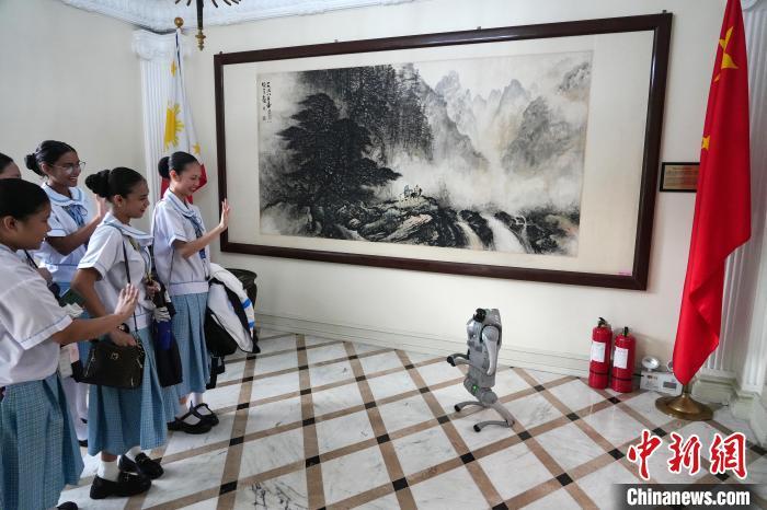 一走進(jìn)使館大廳,一臺(tái)宇樹科技機(jī)器人便上前“作揖迎賓”,不少菲律賓青年一時(shí)愣住,隨后紛紛揮手回應(yīng)?!斑@太酷了!”中學(xué)生杰爾尼興奮地對(duì)同伴說。
