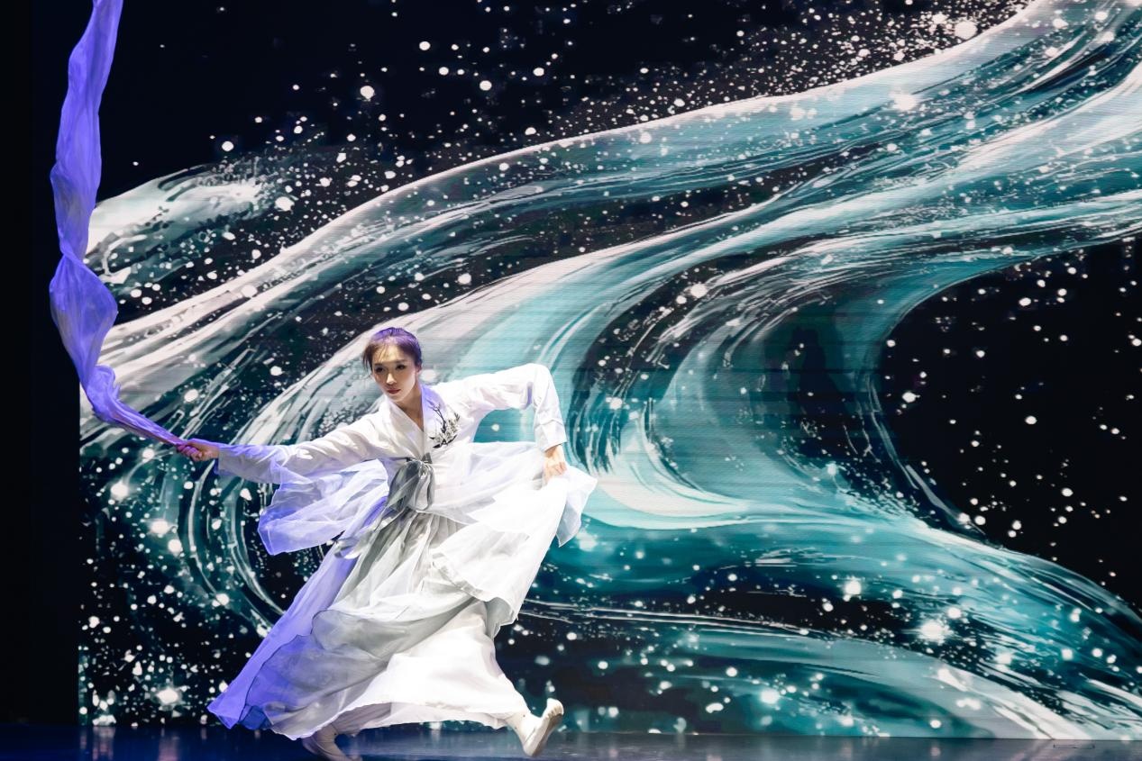 整場演出呈現(xiàn)了12部舞蹈作品,涵蓋中國古典舞、民族民間舞等多種風(fēng)格,兼具詩意美感與情感深度。從婉轉(zhuǎn)柔美的江南意境,到雄渾奔放的草原風(fēng)情;從空靈靜謐的東方哲思,到節(jié)奏明快的少數(shù)民族風(fēng)采,舞者們以精湛技藝與飽滿情感,詮釋了中華文化的韻律之美、形體之美與精神之美。