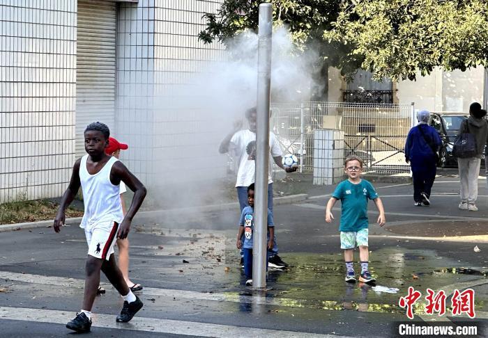 當(dāng)?shù)貢r(shí)間7月1日,法國巴黎遭遇高溫紅色警報(bào)。圖為一群兒童在巴黎郊外的防暑設(shè)施周圍活動(dòng)。中新社記者 李洋 攝