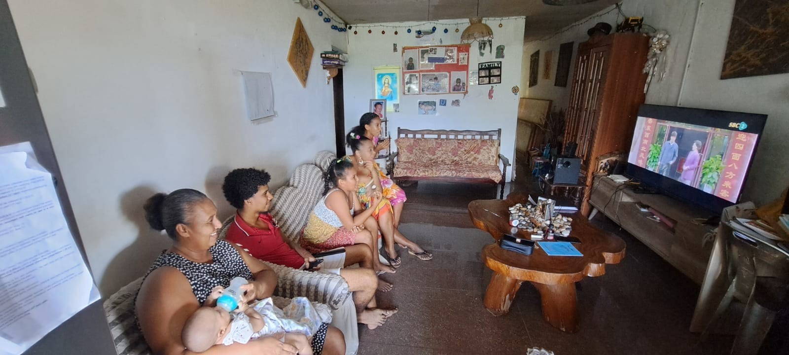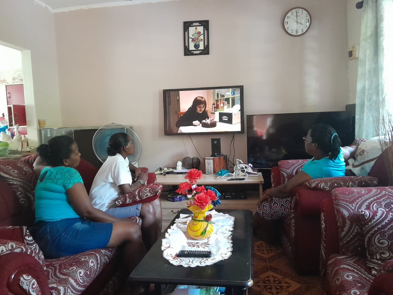 塞舌爾民眾在家中觀看中國電視劇。中國駐塞舌爾大使館供圖