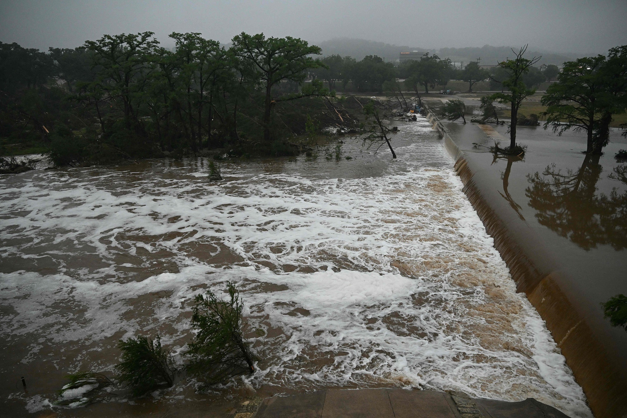 美國國家氣象局說,4日凌晨,瓜達盧普河水位3小時內上漲約6.7米,之后因水位過高水位儀無法測量。(央視記者 劉驍騫)
