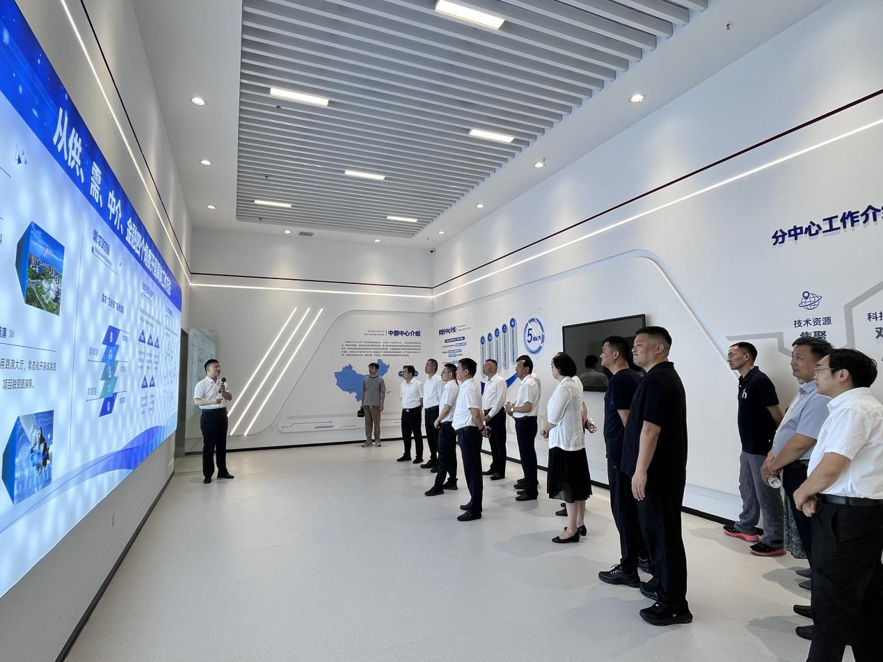 活動中,省科技廳二級巡視員王錦舉與孝感市政府副市長李懷平共同為國家技術(shù)轉(zhuǎn)移中部中心孝感分中心揭牌;參會人員一行還參觀了孝感國家高新區(qū)展示中心展廳、長江3D科學計算中心、國家技術(shù)轉(zhuǎn)移中部中心孝感分中心。