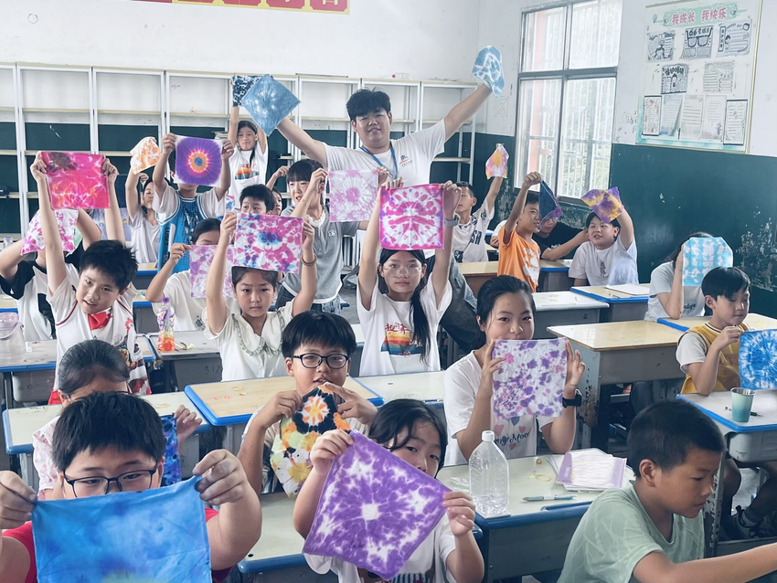 “老師,這是我用扭扭棒做的‘衛(wèi)星’!”東新支教點(diǎn),六年級(jí)學(xué)生王小雨舉著手工作品,眼里閃著光。一個(gè)月來(lái),東新支教點(diǎn)志愿者通過(guò)語(yǔ)文“詩(shī)歌 + 云?!敝黝}課、數(shù)學(xué)游戲化教學(xué)、非遺扎染工作坊,還有防溺水實(shí)訓(xùn)、趣味運(yùn)動(dòng)會(huì)……25名志愿者為183名學(xué)生搭建了“五育并舉”的成長(zhǎng)平臺(tái)。